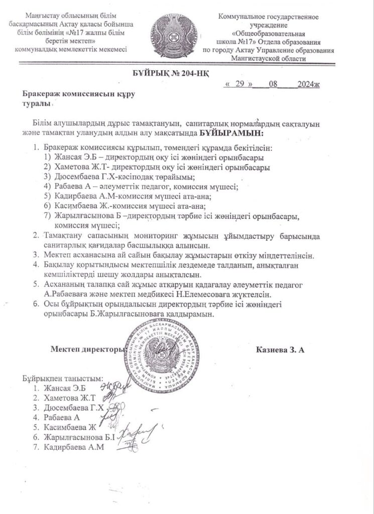 Ақтау қаласы бойынша білім бөлімінің "№17 жалпы білім беретін мектеп" КММ