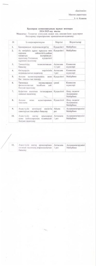 Тамақтану кестесі