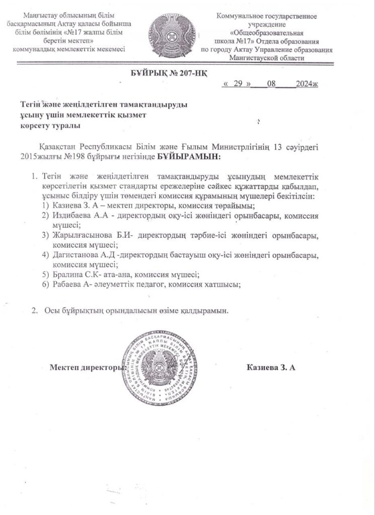 Ақтау қаласы бойынша білім бөлімінің "№17 жалпы білім беретін мектеп" КММ