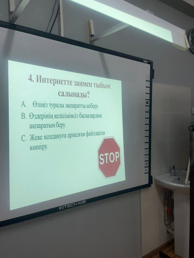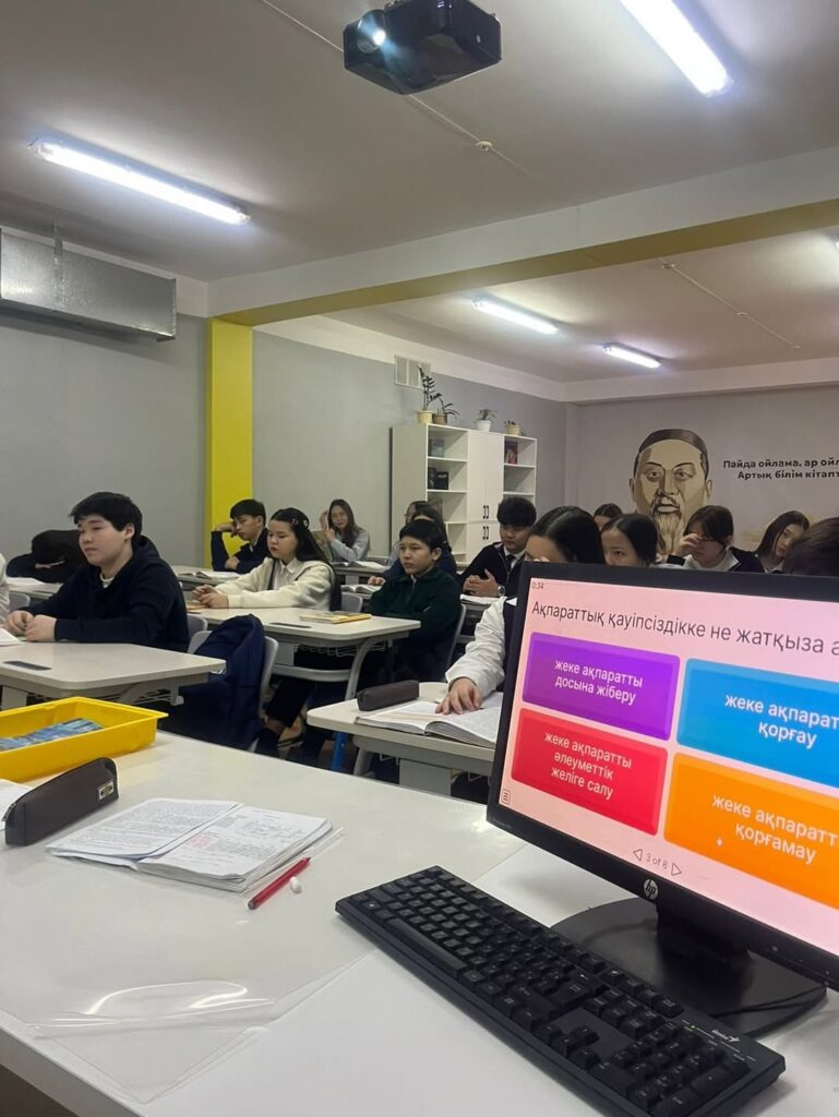 Сабақ барысында оқушыларға қауіпті онлайн ойын түрлері, әлеуметтік желілердегі алаяқтық әрекеттер, жалған сілтемелер мен белгісіз тұлғалардан келетін қауіптер туралы жан-жақты ақпарат берілді. Сонымен қатар жеке деректерді қорғау, құпиясөзді дұрыс пайдалану, күмәнді хабарламаларға жауап бермеу сияқты қауіпсіздік ережелері түсіндірілді.