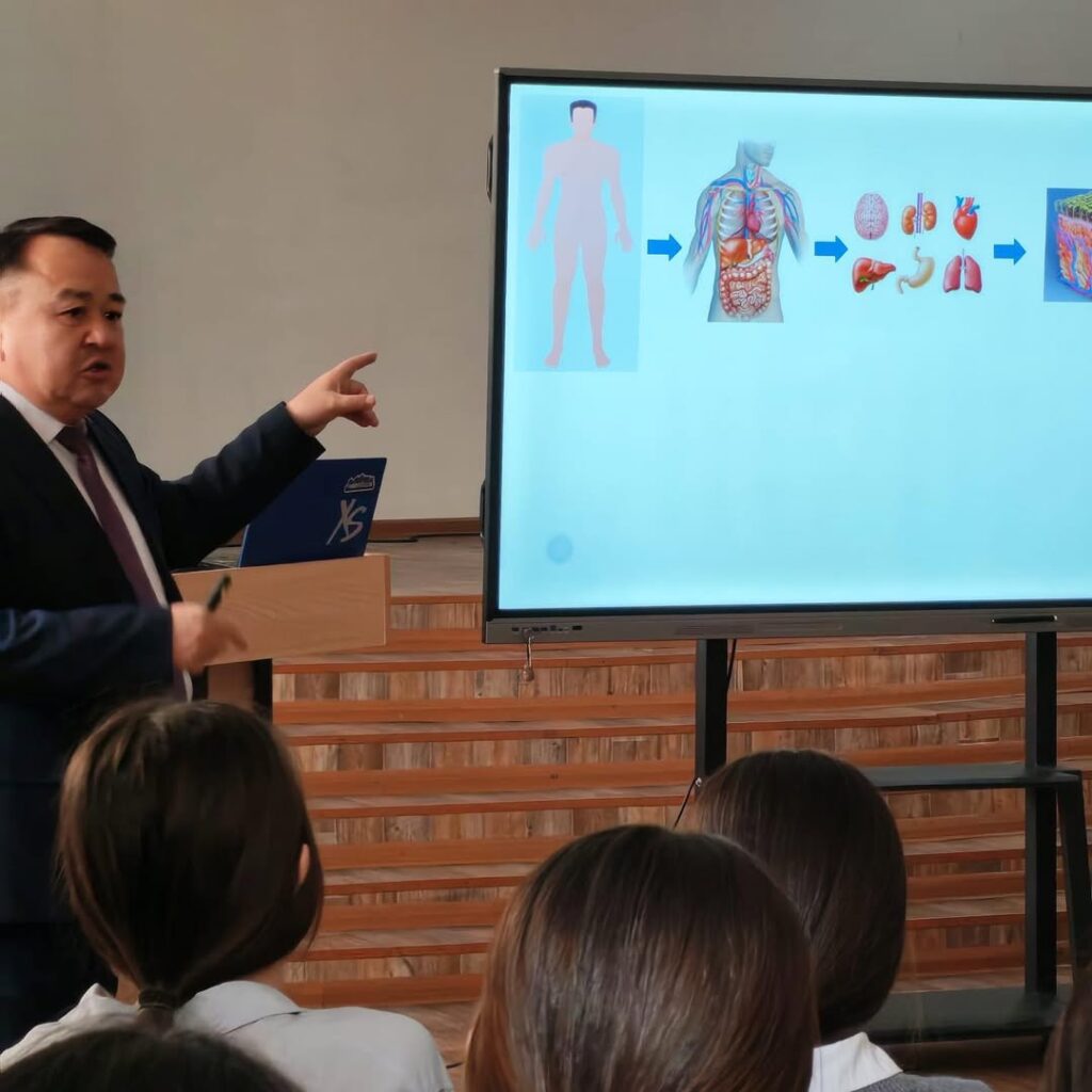 Спикерлер оқушыларға адамға қандай тағам пайдалы екендігі туралы, “Дұрыс тамақтану-бұл калорияларды бақылау және шексіз диеталар емес, бұл қажетті тағамдар: ет, дәнді дақылдар, сүт өнімдері, жемістер, көкөністер, жаңғақтар бар толық диета. ондай – ақ дұрыс диетаны сақтау керек” екендігі туралы және қазіргі кезде белең алып,тіпті жастар арасында да көбейіп жатқан әр түрлі аурулар мен олардың пайда болу себептерін түсіндіріп,интерактивті тақтадан оқушыларға бейнеролик көрсетілді.