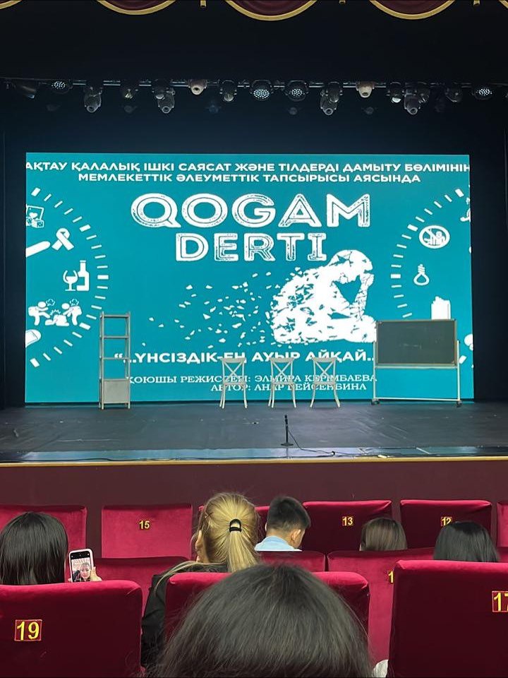 2025 жылдың 31 қазан күні 8 “А” сынып оқушылары Ақтау қалалық ішкі саясат және тілдерді дамыту бөлімінің ұйымдастыруымен өткен “Қоғам дерті” атты әлеуметтік-психологиялық қойылымға барып қатысты.