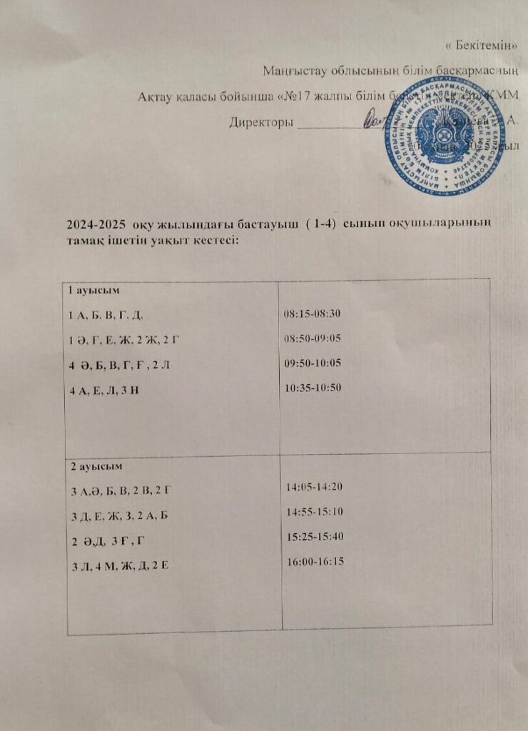 КГУ "Общеобразовательная школа №17" Отдела образования по городу Актау