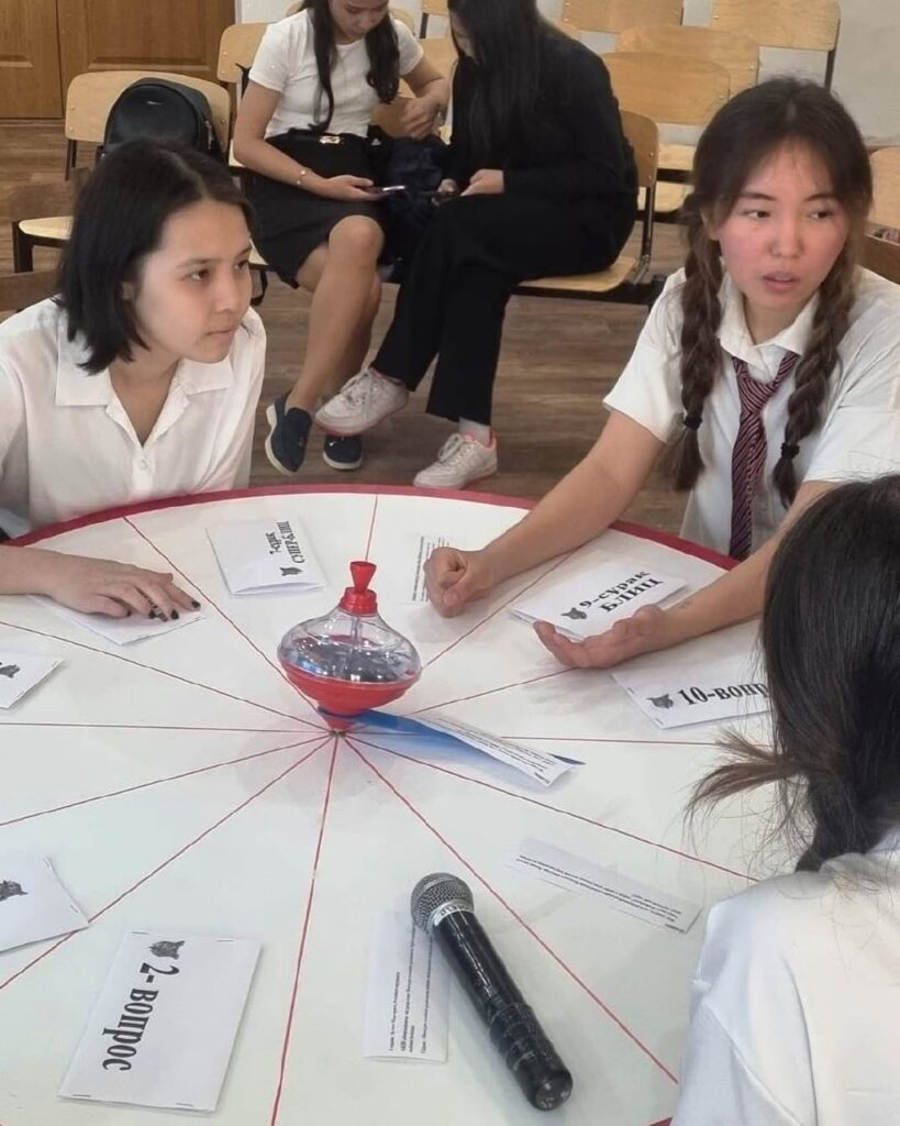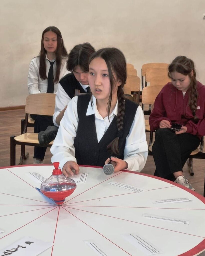 16 мая в нашей школе состоялся финал интеллектуальной игры «Что? Где? Когда?». В финальной игре приняли участие лучшие игроки этапных туров – учащиеся 9 класса: Өмержанов Адильхан, Сарина Альбина, Куанышкызы Акерке, Асхаткызы Акниет, Чадыкулова Нурай и Ким Анэль. В напряжённой борьбе юные знатоки продемонстрировали высокий уровень знаний, и Чадыкулова Нурай была признана «Лучшим игроком года». Финальную игру на высоком уровне провели руководитель клуба Танбаева Н.Ш. и члены клуба, учащиеся 9 класса: Шулезбаева Сабина, Шамшеденова Диляра, Сатмаганбетова Камила, Кусаин Айясем. Мы выражаем благодарность всем юным знатокам, принимавшим участие в играх клуба в течение учебного года!