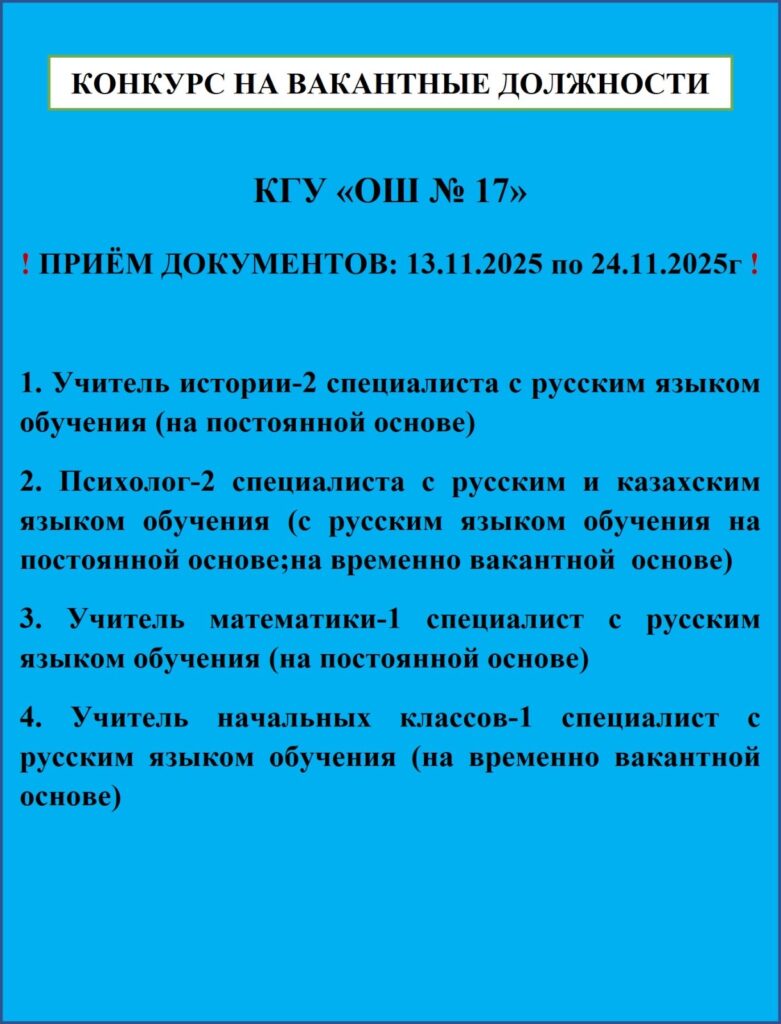 Конкурс19 ноября, 202519 ноября, 2025 Прием документов производится с 13.11.2025 по 24.11.2025г Документы для участия в конкурсе следует пройти по ссылке (hr-nobd.iac.kz) зарегистрироваться с личным ЭЦП ключом. Добавить комментарий Отменить ответВаш адрес email не будет опубликован. Обязательные поля помечены *Имя * Email * Сайт Комментарий * Сохранить моё имя, email и адрес сайта в этом браузере для последующих моих комментариев.