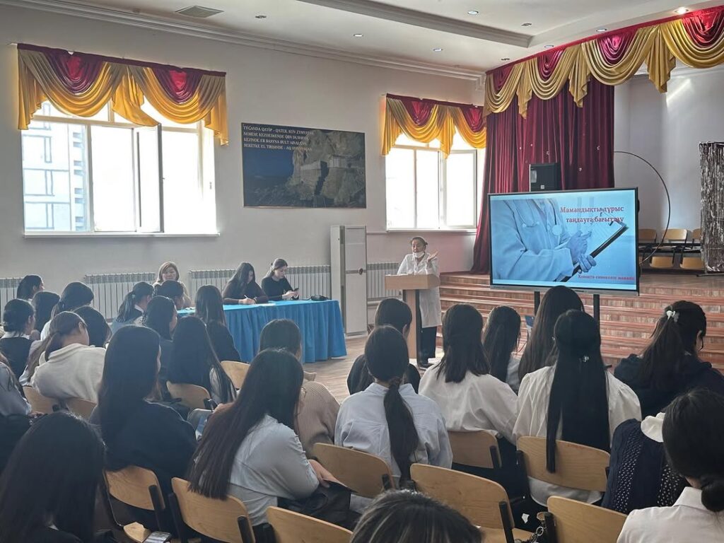 ✨ Осындай кездесулер оқушылардың сауаттылығын арттырып, болашақ мамандық таңдауда дұрыс бағыт береді.Балалардың денсаулығын сақтау мектептегі тәрбиенің бір бөлігі болып табылады дей келе қыздар қауымының денсаулығы – бұл біздің ұлтымыздың болашағы. Жас ұрпақтың болашағы үшін осындай тақырыптағы іс-шараларды белсенді түрде жиі өткізілу қажет екені айтылды. Шараға 9-10 сыныптың 105 қыз балалары қатысты.#profmangystau