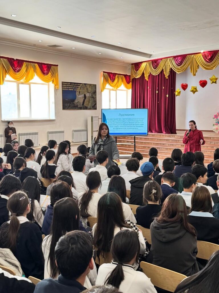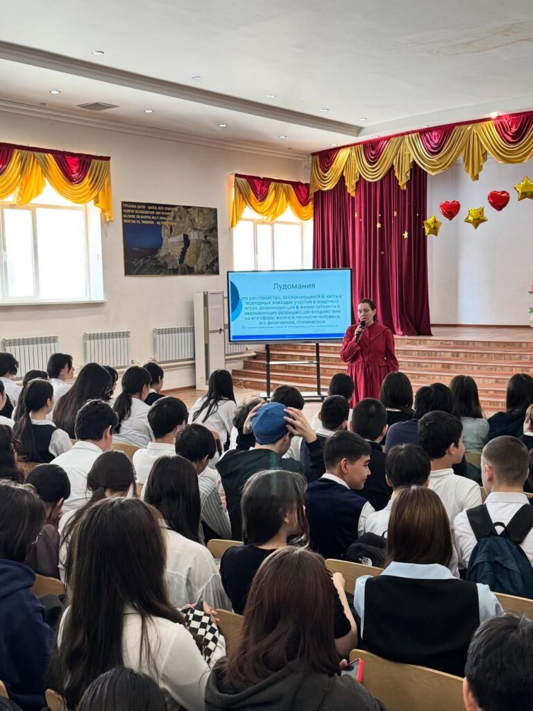 Дәріс барысында оқушыларға лудоманияның зияны, оның адам денсаулығына, психологиялық жағдайына және әлеуметтік өміріне тигізетін кері әсерлері туралы кеңінен түсіндірілді. Мамандар құмар ойындарға тәуелділіктің қалай пайда болатынын, оның алдын алу жолдарын және бос уақытты пайдалы әрі тиімді өткізудің маңыздылығын атап өтті.