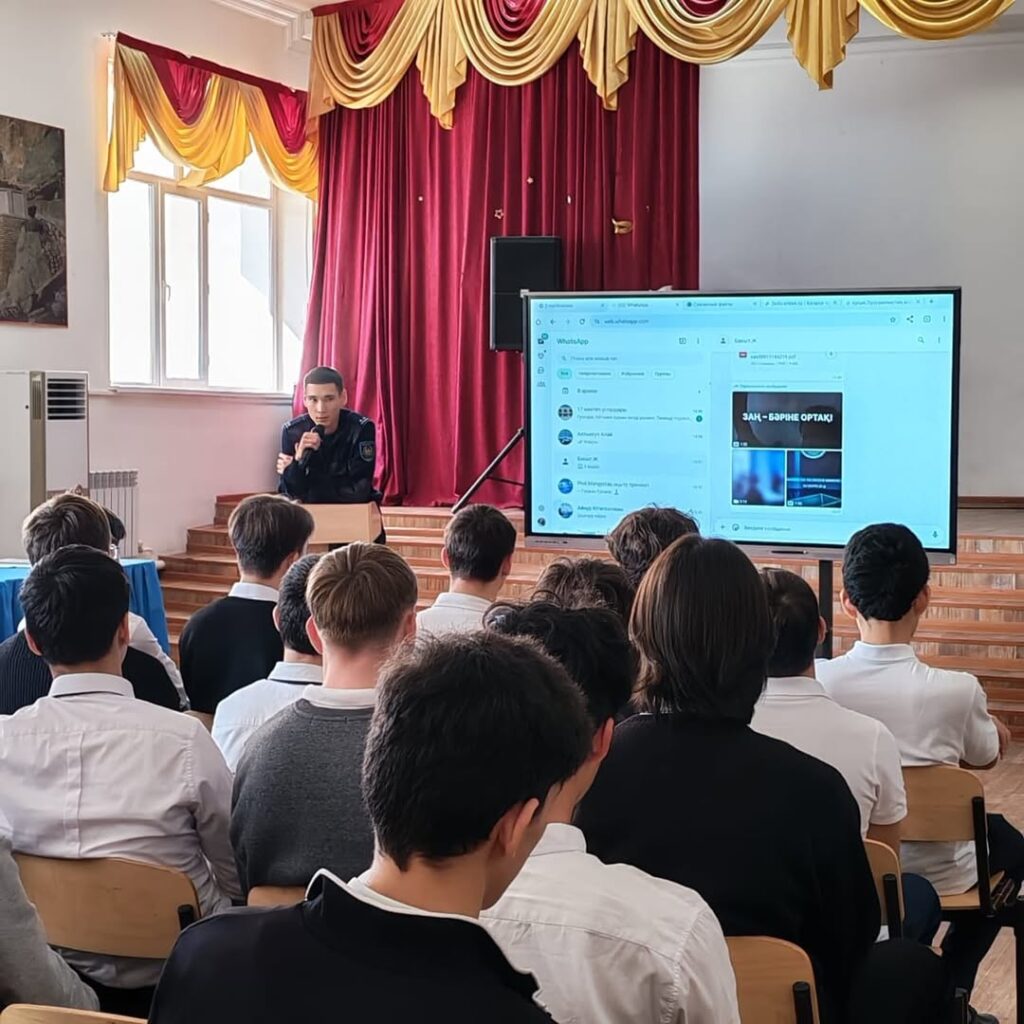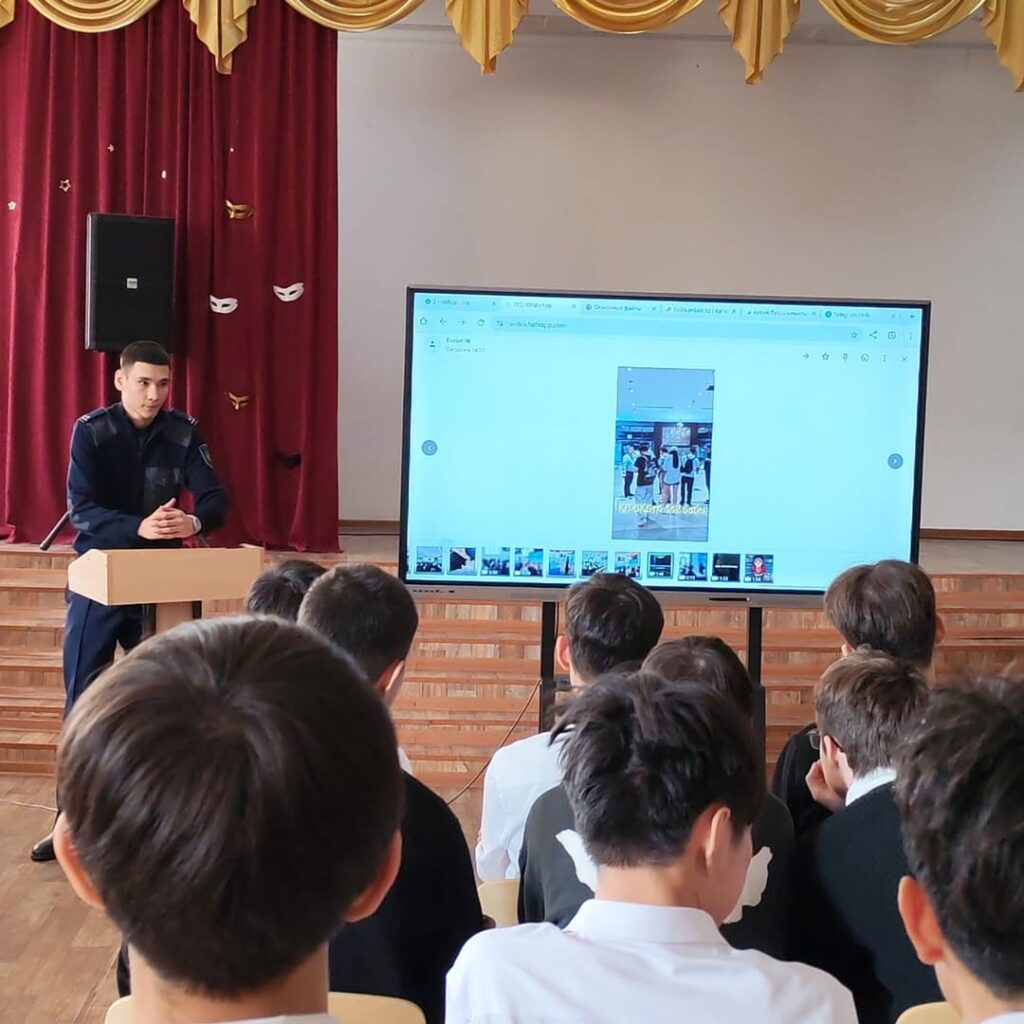 «Заң және тәртіп» жобасы аясында №17 жалпы білім беретін мектепте 18.11.2025 жылы ұрлық, буллинг, топтық төбелес және қылмыстың алдын алу мен оларды болдырмау мақсатында 9-10 сынып оқушыларымен мектеп инспекторы Хожамуратов С. түсінік жұмысын жүргізді.Мектеп инспекторы Хожамұратов С. оқушыларға олардың қауіпсіздіктері қамтамасыз етілу және қылмысты болдырмау үшін кешкі мезгілде көшеде жүрмеуге, қоғамдық орындарда өздерін дұрыс ұстауға,шағын аудан арасындағы топтық төбелестерге қатыспауға шақырды.Оқушылар сұрақтар қойып,оларға тұшымды жауап алды.